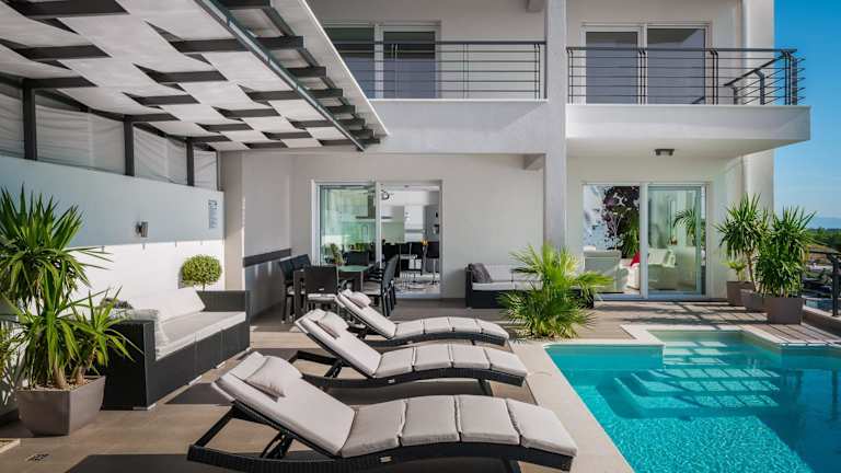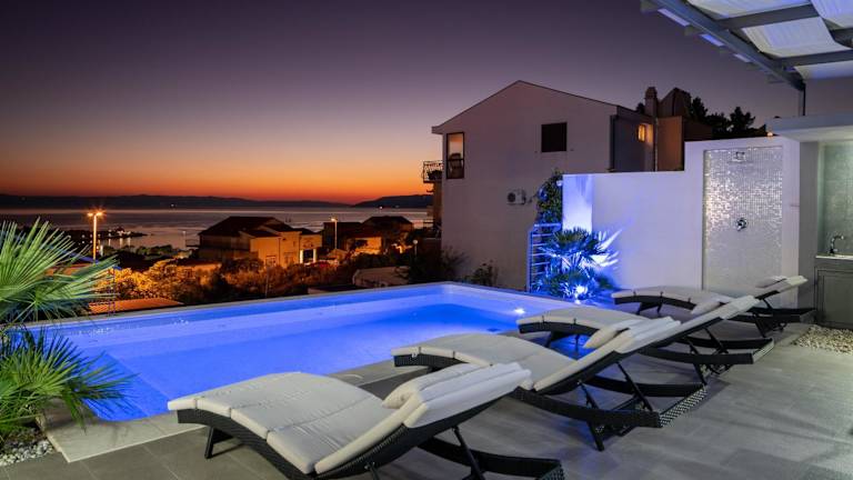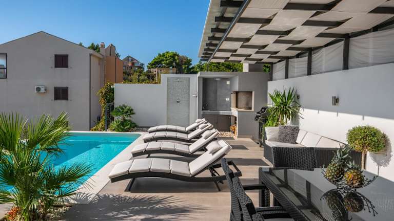Das Hotel Villa Palladium in Makarska bietet Ihnen einen luxuriösen Aufenthalt mit atemberaubendem Panoramablick auf das Meer. Entspannen Sie am beheizten Infinity-Außenpool oder auf der Sonnenterrasse und genießen Sie die kostenfreie Nutzung des WLANs. Zusätzlich stehen Ihnen Garagenparkplätze zur Verfügung und auf dem Dach erwartet Sie ein Whirlpool. Die Unterkünfte sind mit einer voll ausgestatteten Küche, einem Sitzbereich, einem Flachbild-Sat-TV und einem eigenen Bad ausgestattet. Die Villa bietet auch Fahrrad- und Autovermietung sowie Grillmöglichkeiten.