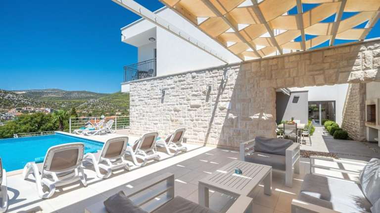 Die Villa Paloma Blanca befindet sich in Seget Vranjica, nur 400 m vom Strand Sedlo entfernt. Der archäologische Park Salona ist in einer Entfernung von 29 km erreichbar. Der Flughafen Split liegt 10 km von der Unterkunft entfernt.