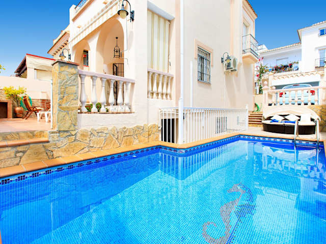 Die Villa Palomas by SpainSunRentals 1072 bietet Übernachtungsmöglichkeiten mit Poolblick und einem Balkon. Diese klimatisierte Unterkunft verfügt über 3 Schlafzimmer und 3 Badezimmer. Zudem stehen Bettwäsche, Handtücher, ein TV mit Satellitenkanälen und eine voll ausgestattete Küche zur Verfügung. Eine Terrasse mit Bergblick rundet das Angebot ab. Die Unterkunft ist eine Nichtraucherunterkunft, in der alle öffentlichen und privaten Bereiche rauchfrei sind.