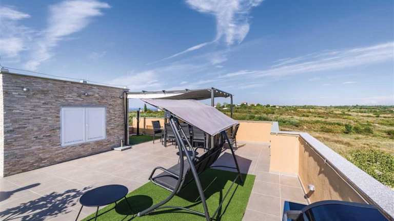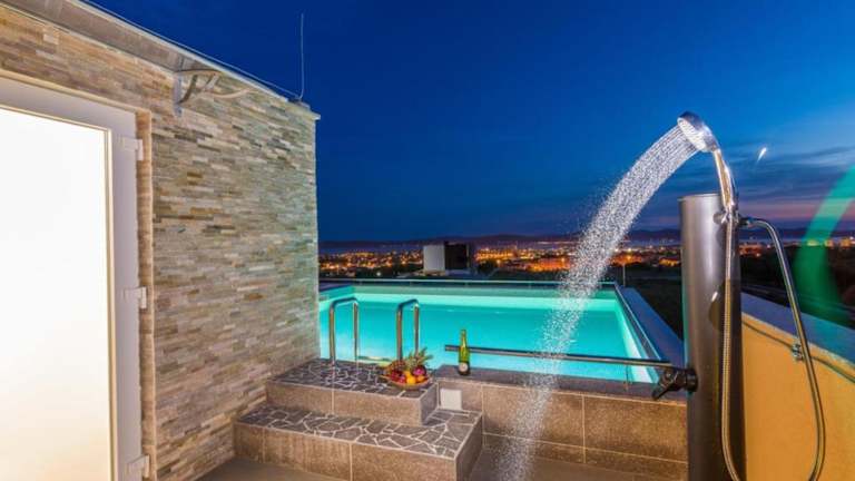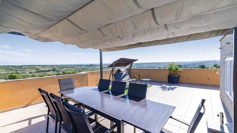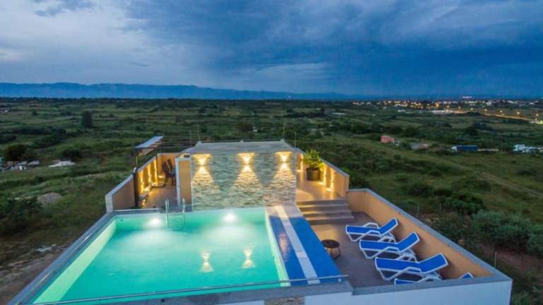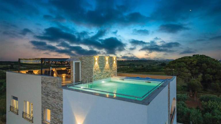 Die Villa Panorama mit Dachpool bietet klimatisierte Übernachtungsmöglichkeiten und verfügt über einen eigenen Pool, einen Garten sowie eine Terrasse mit Poolblick. Die Unterkunft bietet ein heimeliges Ambiente mit einer modernen Ausstattung und umfasst 6 Schlafzimmer sowie 3 Badezimmer. Zudem stehen Bettwäsche und Handtücher zur Verfügung. Ein kostenloser Privatparkplatz ist ebenfalls vorhanden.