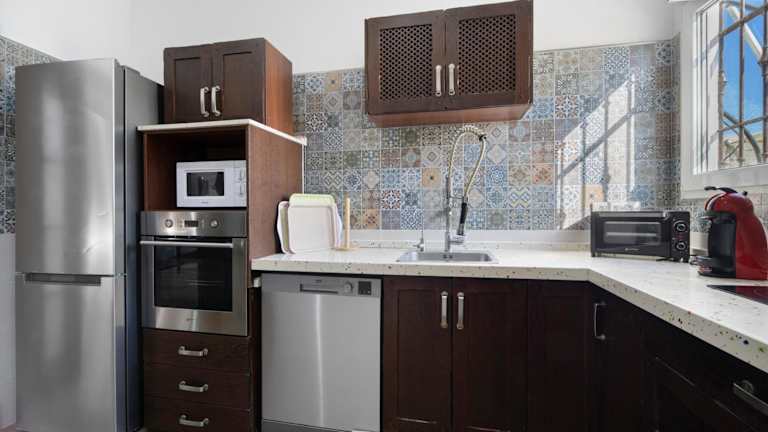 Die Villa verfügt über 4 Schlafzimmer, eine voll ausgestattete Küche mit Kühlschrank und Geschirrspüler sowie 2 Badezimmer mit Dusche. Handtücher und Bettwäsche werden bereitgestellt, und es sind auch Waschmaschinen vorhanden.