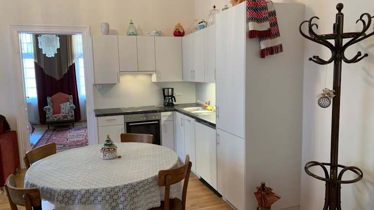Die voll ausgestattete Küche der Ferienwohnung ermöglicht es Gästen, eigene Mahlzeiten zuzubereiten. Es sind keine spezifischen Verpflegungsmöglichkeiten beschrieben, ausser den typischen Annehmlichkeiten einer Küchenzeile.