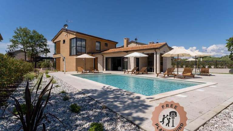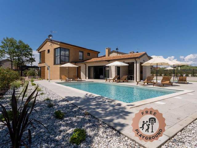 Die Villa Pedena hat einen eigenen Pool und eine Terrasse mit Blick auf den Pool und den Garten. Zur Ausstattung gehören ein saisonaler Aussenpool, eine Sauna und ein Whirlpool. Es wird kostenloses WLAN und ein kostenloser Privatparkplatz angeboten. Die Unterkunft ist klimatisiert und verfügt über einen Garten sowie Grillmöglichkeiten.