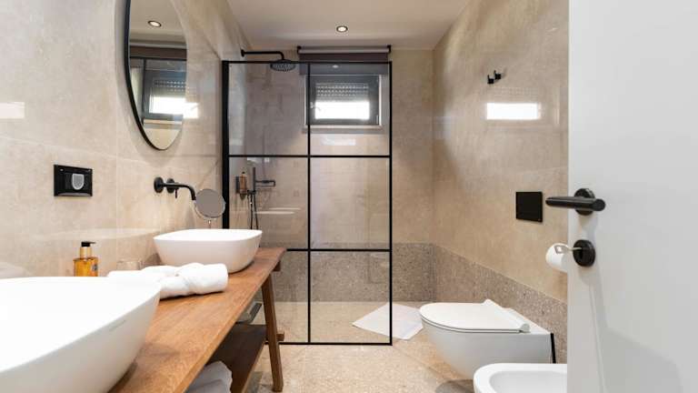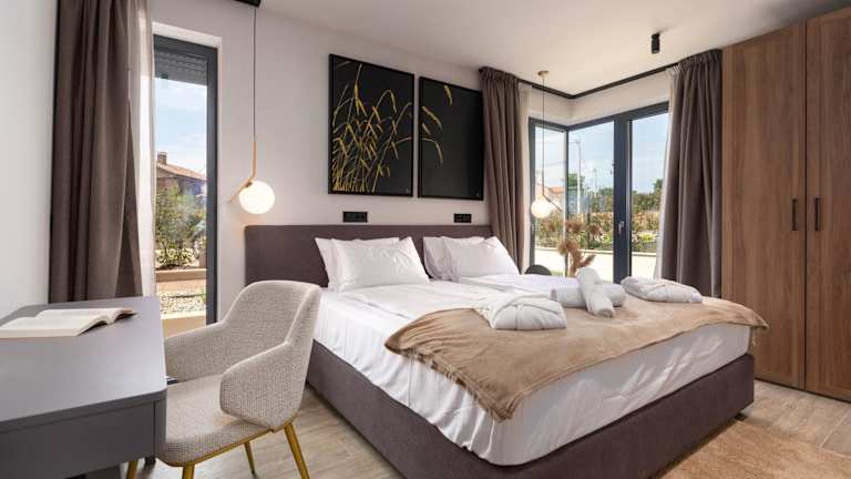 Die Villa besteht aus 4 Schlafzimmern, einem Wohnzimmer und einer voll ausgestatteten Küche mit Kühlschrank und Kaffeemaschine. Es stehen 4 Badezimmer mit Bidet und Dusche zur Verfügung. Handtücher und Bettwäsche werden bereitgestellt. Schallisolierte Zimmer sorgen für Bequemlichkeit.