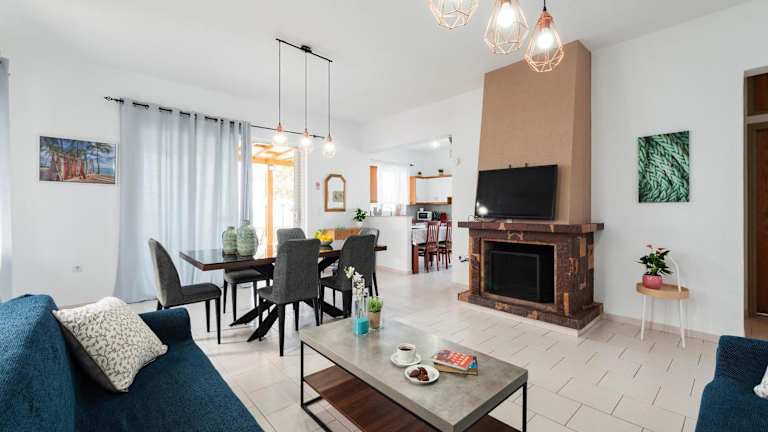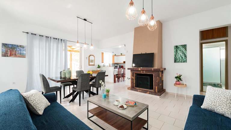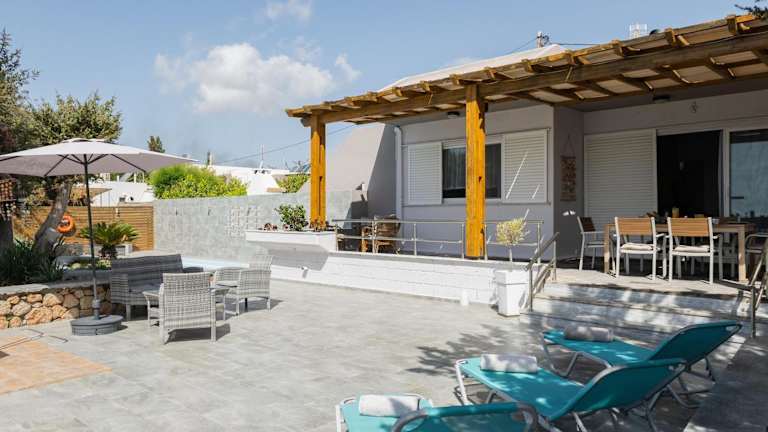 Die klimatisierte Villa umfasst 3 Schlafzimmer, ein Wohnzimmer und eine voll ausgestattete Küche mit Kühlschrank und Kaffeemaschine. Zudem stehen 2 Badezimmer mit Dusche und Haartrockner zur Verfügung. Handtücher und Bettwäsche werden bereitgestellt.