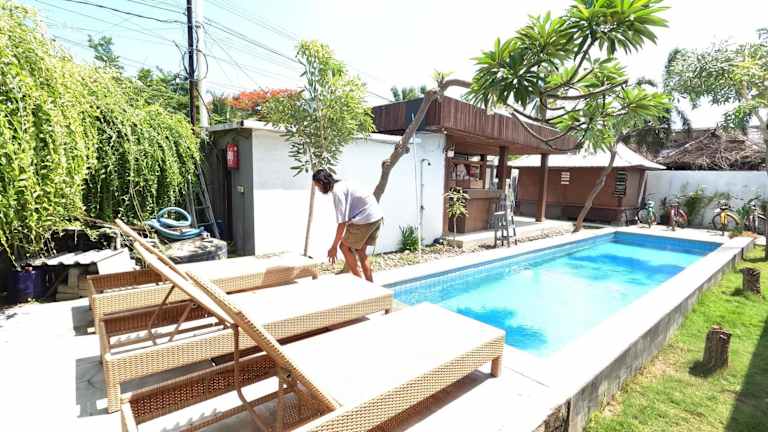 Die Unterkunft Villa Phyphy befindet sich in Gili Trawangan, etwa 500 Meter vom Südöstlichen Strand entfernt. In der Nähe liegt der Nordöstliche Strand, der 600 Meter entfernt ist, sowie der Südwestliche Strand in 1,5 km Entfernung. Die Gegend ist bekannt für ihre Schönheit und die Möglichkeit zum Velofahren.