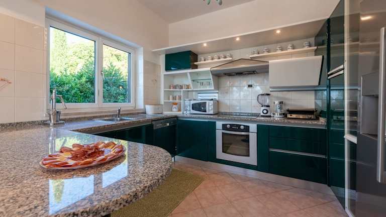 Die Villa verfügt über 5 Schlafzimmer, ein Wohnzimmer und eine voll ausgestattete Küche mit Kühlschrank und Kaffeemaschine. Es gibt 5 Badezimmer, ausgestattet mit Dusche und Bidet. Handtücher und Bettwäsche werden bereitgestellt.