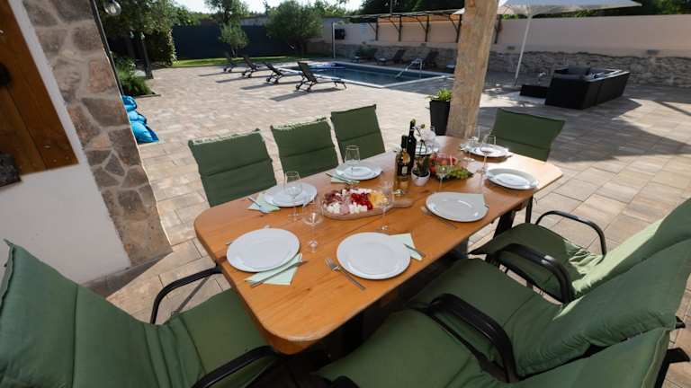 Die Villa Pietra ist eine moderne, rustikale Unterkunft mit einem einladenden Aussenpool, einem Garten und einer Terrasse. Die Villa bietet Platz für bis zu vier Schlafzimmer und ist ideal für einen erholsamen Aufenthalt.