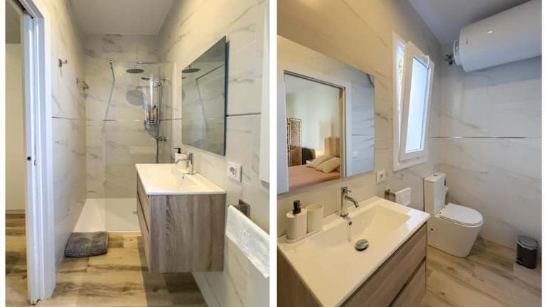 Das Ferienhaus umfasst 3 Schlafzimmer, ein Wohnzimmer sowie eine voll ausgestattete Küche mit Kühlschrank und Kaffeemaschine. Es sind 4 Badezimmer mit Dusche vorhanden. Bettwäsche und Handtücher werden bereitgestellt.