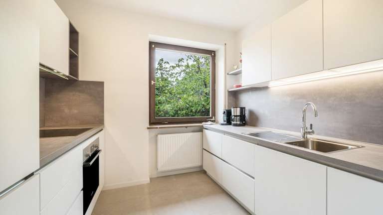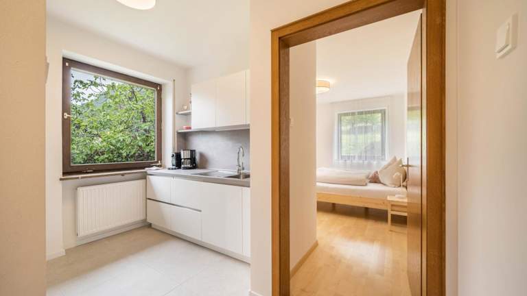 Die Ferienwohnung umfasst ein Schlafzimmer, ein Wohnzimmer mit TV, eine gut ausgestattete Küche mit Kühlschrank und Geschirrspüler sowie ein Badezimmer mit Dusche. Handtücher und Bettwäsche werden bereitgestellt.