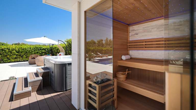 Die Unterkunft bietet eine Reihe von Annehmlichkeiten, darunter kostenloses WLAN, einen Garten mit einem Außenpool, Zugang zu einer Sauna und einem Whirlpool. Die Gäste können eine Terrasse und Grillmöglichkeiten nutzen. Eine Buchung in der Villa Pino schließt den Zugang zu schallisolierten Zimmern ein. Die Unterkunft ist privat geführt und untersagt Junggesellenabschiede sowie ähnliche Feiern. Der Mindestalter für den Check-in beträgt 18 Jahre, Haustiere sind nicht gestattet.