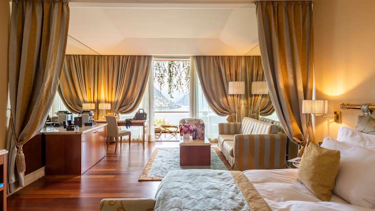 Die Villa Principe Leopoldo, einst eine historische Adelsresidenz, präsentiert sich heute als elegantes Boutique-Hotel auf der Collina d’Oro in Lugano. Die Struktur verfügt ausschließlich über 37 exklusive Suiten, die durch Großzügigkeit, Raffinesse und zeitloses Design beeindrucken. Die Unterkünfte sind lichtdurchflutet und mit edlem Parkettboden, Klimaanlage, modernen Annehmlichkeiten und ausgewählten Designdetails ausgestattet. Viele Suiten verfügen über Balkone oder Terrassen mit Blick auf den See oder die umliegenden Gärten, während andere durch direkten Zugang ins Grüne oder großzügige Panoramen bestechen. Besondere Kategorien wie die Panorama One Bedroom Suite mit weitem Seeblick, die Princess Garden Suite mit privatem Garten oder die Signature Lake Suite mit bis zu 130 m² Wohnfläche, zwei Badezimmern und großem Balkon unterstreichen den unverwechselbaren Charakter der Villa. Darüber hinaus gibt es barrierefreie Junior Suiten sowie Suiten mit Verbindungstüren, ideal für Familien oder längere Aufenthalte. So verbindet Villa Principe Leopoldo historische Eleganz mit höchstem Wohnkomfort und bietet ein einzigartiges Erlebnis, das diskreten Luxus und den Charme der Collina d’Oro vereint.