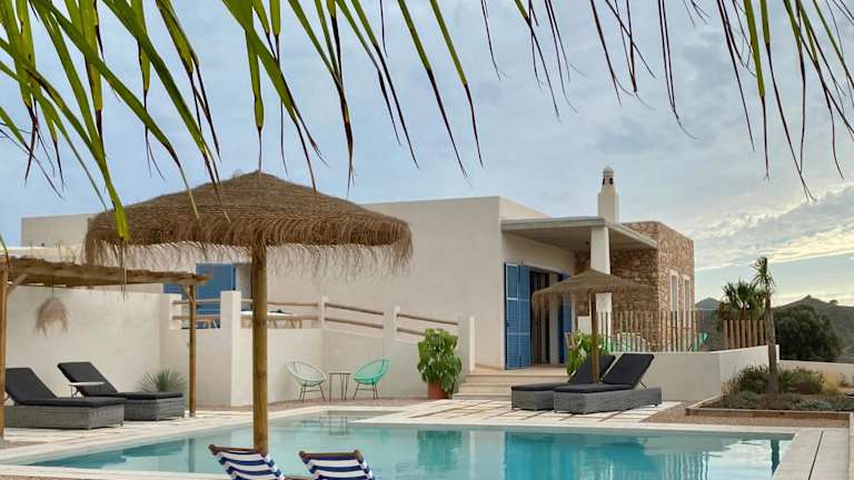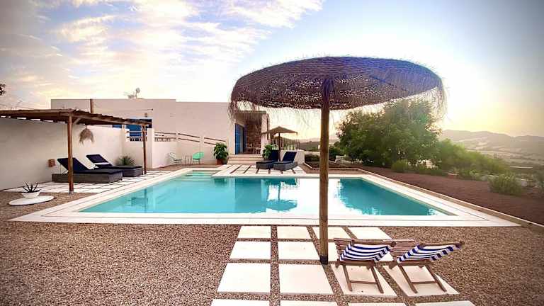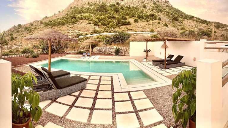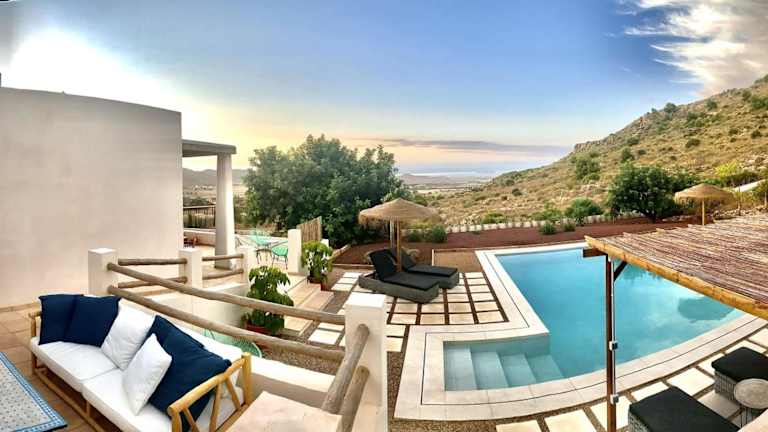 Die Villa privada en entorno rural befindet sich im Parque Regional de Calblanque, in der ruhigen Gegend von Los Belones, nah bei Cartagena. Die Umgebung bietet eine naturnahe Idylle, unweit von den Stränden Punta Seca und Playa Larga.