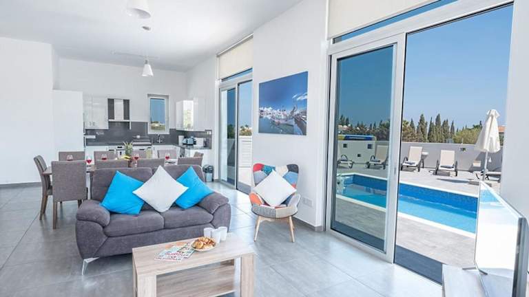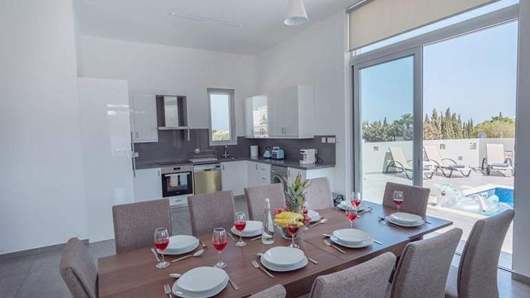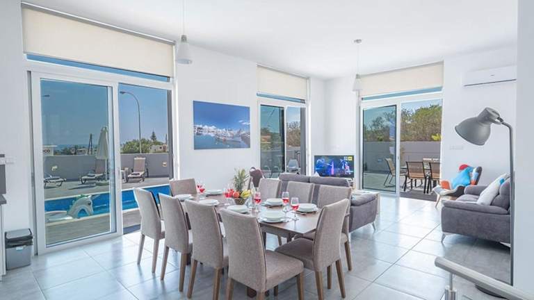 Die Villa Protaras Miramar ist eine luxuriöse und moderne Unterkunft mit einem eigenen Pool. Sie bietet Platz für bis zu 10 Personen und hat eine elegante Ausstattung. Die Unterkunft ist als Nichtraucherunterkunft konzipiert und erlaubt keine Feiern wie Junggesellenabschiede.