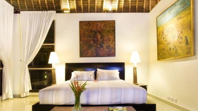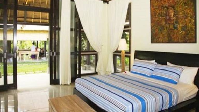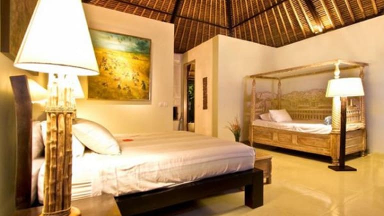 Die Villa im balinesischen Stil ist umgeben von einem wunderschön angelegten tropischen Garten mit einem Fischteich und Brunnen. Die Zimmer sind geschmackvoll mit balinesischen Skulpturen und Kunstwerken eingerichtet. Jedes Zimmer verfügt über eine Klimaanlage, ein eigenes Bad und einen Safe. Entspannen Sie sich im erhöhten Pavillon, der einen herrlichen Blick auf die Reisfelder bietet.
