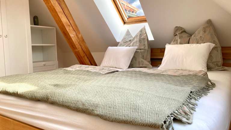 Die Ferienwohnung besteht aus 2 Schlafzimmern, einem Wohnzimmer sowie einer voll ausgestatteten Küche mit Kühlschrank und Wasserkocher. Ein Badezimmer mit Dusche und Haartrockner ist ebenfalls vorhanden. Handtücher und Bettwäsche werden bereitgestellt.