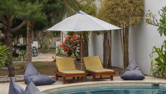 Die Villa Rika befindet sich nur 100 m vom Strand von Gili Trawangan entfernt. In der Umgebung sind verschiedene Aktivitäten möglich, darunter eine 10-minütige Bootsfahrt zu nahegelegenen Tauchplätzen sowie eine 15-minütige Kutschfahrt über die Insel. Der Kunstmarkt ist nach 1,5 km erreichbar, während der internationale Flughafen Lombok etwa 53 km entfernt ist.