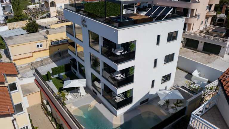Die Villa Royal liegt direkt am Strand, nur wenige Schritte vom Strand Marinova Draga entfernt. Beliebte Sehenswürdigkeiten in der Nähe sind der Strand Rozac, der Strand Copacabana und der Yachthafen Trogir. Der nächstgelegene Flughafen ist der 7 km entfernte Flughafen Split.