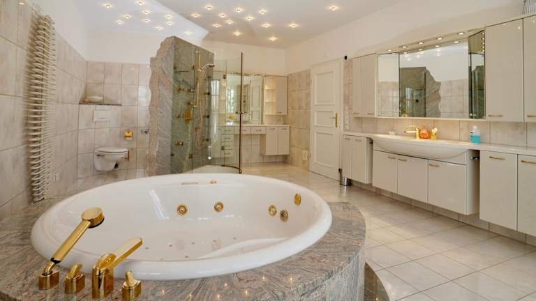 Die Ferienunterkunft ist im Erdgeschoss gelegen und besteht aus 5 Schlafzimmern. Sie ist ausgestattet mit einem Flachbild-TV mit Satellitenkanälen und einer voll ausgestatteten Küche, die einen Kühlschrank und Geschirrspüler bietet. Handtücher und Bettwäsche können gegen Aufpreis bereitgestellt werden.