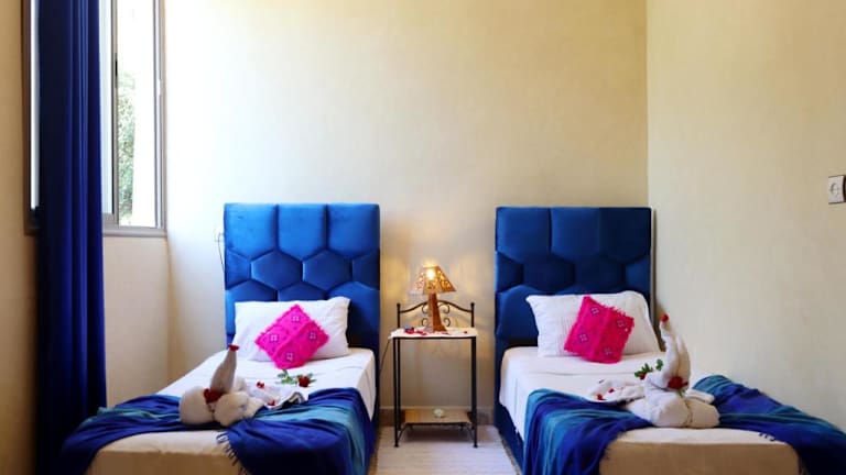 Die Unterkunft villa saada liegt in Marrakesch, etwa 33 km vom Bahia-Palast und dem Marktplatz Djemaa el Fna entfernt. Der nächstgelegene Flughafen ist der Flughafen Marrakesch Menara, ebenfalls 33 km entfernt. In der Umgebung gibt es Möglichkeiten für verschiedene Aktivitäten und Ausflüge.