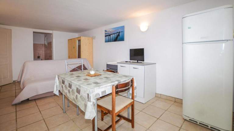Das Ferienhaus verfügt über ein Schlafzimmer, ein Wohnzimmer sowie eine voll ausgestattete Küche mit Kühlschrank und Kaffeemaschine. Ein Badezimmer mit Dusche ist ebenfalls vorhanden, und es gibt einen TV für die Unterhaltung. Die Unterkunft ist eine Nichtraucherunterkunft und nur für Erwachsene geeignet.