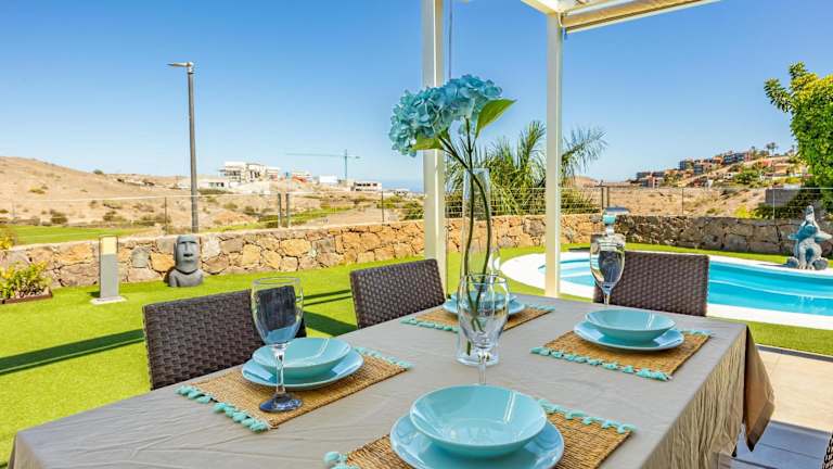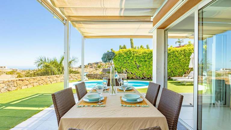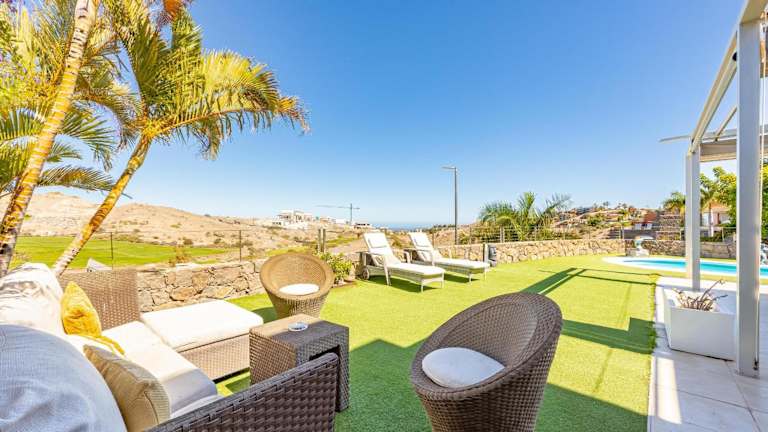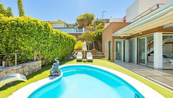 Die Villa Salobre Golf - by Gestión Vacacional Canarias bietet eine angenehme Beherbergung mit kostenlosem Wifi, Klimaanlage, eigenem Pool und Garten. Die Villa verfügt über einen Privatparkplatz und eine Terrasse, ideal zum Entspannen.