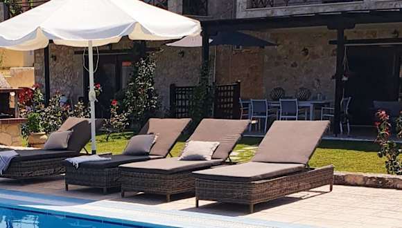 Die Villa bietet Platz für bis zu 4 Gäste und besteht aus 2 Schlafzimmern. Die klimatisierten Zimmer beinhalten einen Balkon mit Bergblick sowie eine Terrasse mit Meerblick. Zur Ausstattung gehören ein Satelliten Flachbild-TV, ein Badezimmer mit Badewanne und ein Haartrockner. Es besteht auch die Möglichkeit, ein Zustellbett ab 6 Jahren gegen eine Gebühr hinzuzufügen.