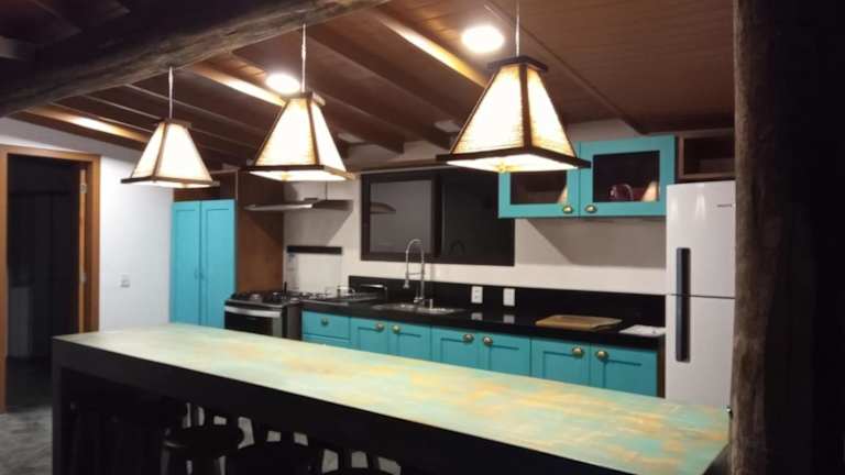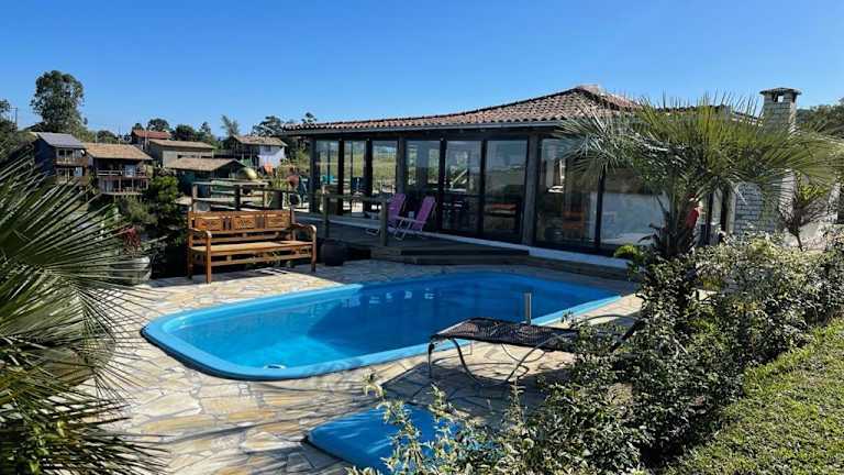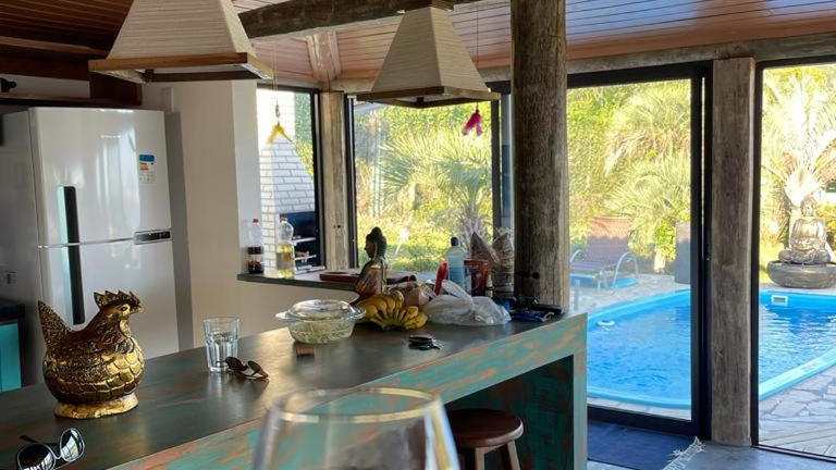 Die Villa Santorini Praia do Rosa bietet eine angenehme Atmosphäre mit einem eigenen Pool, einer Terrasse, einem Garten sowie Grillmöglichkeiten. Die Villa ist klimatisiert und bietet Gratis-Wifi sowie eine kostenfreie Privatparkiermöglichkeit.