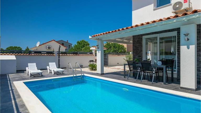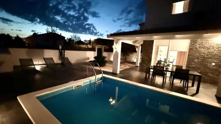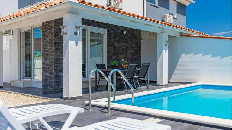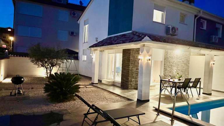 Die Villa Sarah Medulin bietet eine heimelige Unterkunft mit einem eigenen Aussenpool und einer Terrasse. Sie verfügt über einen grosszügigen Garten und Grillmöglichkeiten, ideal für gesellige Abende im Freien. Die Unterkunft ist mit kostenlosem Wifi und einem kostenfreien Privatparkplatz ausgestattet. Bitte beachten Sie, dass Feiern wie Junggesellenabschiede nicht erlaubt sind.