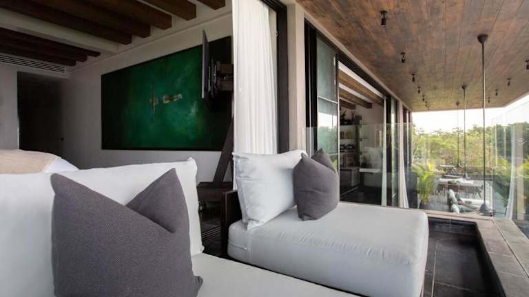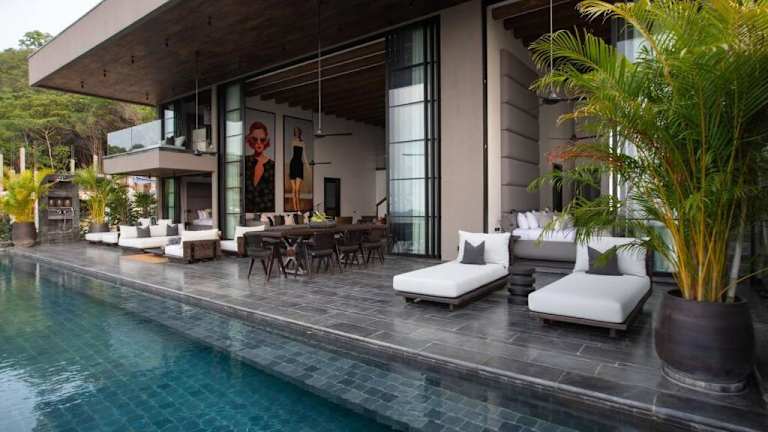 Die Villa umfasst 4 Schlafzimmer und 5 Badezimmer, darunter eine Badewanne und ein Haartrockner. Das Wohnzimmer und der Aussenpool bieten zusätzlichen Raum zur Entspannung. Handtücher und Bettwäsche werden bereitgestellt und die Villa ist klimatisiert.