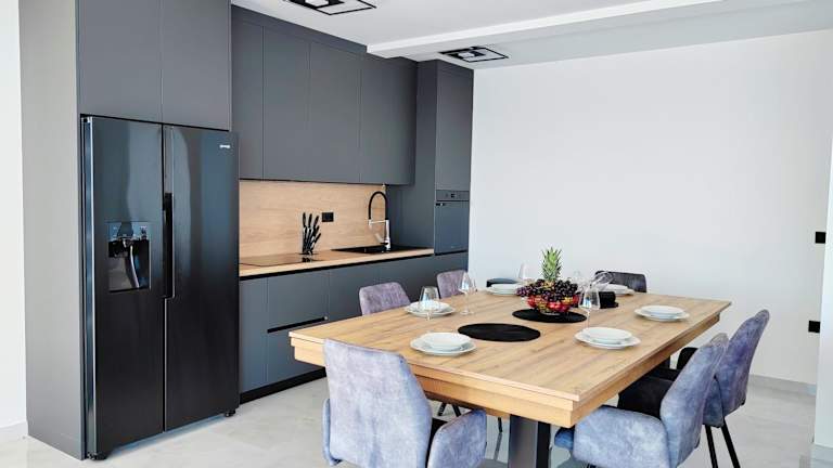 Die Villa ist mit einer gut ausgestatteten Küche versehen. Vor Ort sind Grillmöglichkeiten verfügbar, und es besteht die Möglichkeit, Essen in die Unterkunft liefern zu lassen.