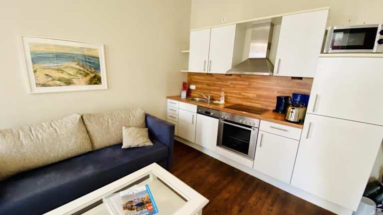 Die Ferienwohnung bietet ein Schlafzimmer, Kabel-TV, einen Essbereich sowie eine Küchenzeile mit Kühlschrank. Zudem steht ein gemütliches Wohnzimmer zur Verfügung.