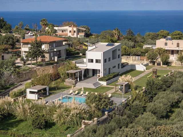 Die Villa Sfedami bietet klimatisierte Übernachtungsmöglichkeiten mit einem Balkon und kostenlosem WLAN. Die Unterkunft beinhaltet 7 Schlafzimmer und 4 Badezimmer, ausgestattet mit Bettwäsche, Handtüchern, und einem Flachbild-TV mit Satellitenkanälen. Zudem verfügt sie über einen eigenen Pool, einen Garten und eine Terrasse mit Blick auf die Berge. Ein Whirlpool sorgt für zusätzliche Bequemlichkeit. Die Villa eignet sich für Familien und ist eine Nichtraucherunterkunft, wo Feiern wie Junggesellenabschiede nicht gestattet sind.