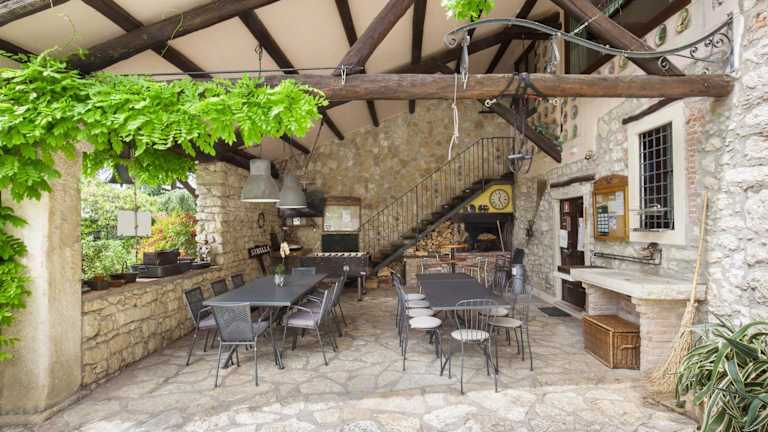 Die Villa bietet eine voll ausgestattete Küche, so dass die Gäste ihre eigenen Mahlzeiten zubereiten können. Es gibt auch viele Restaurants in der Umgebung, in denen die Gäste lokale Spezialitäten genießen können. Von traditioneller italienischer Küche bis hin zu internationalen Gerichten ist für jeden Geschmack etwas dabei.