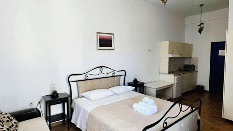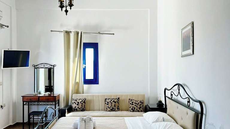 Die eleganten Apartments im traditionellen Kykladenstil sind mit Kuppeldecken und Fliesenböden ausgestattet. Jedes Apartment verfügt über einen grosszügigen Sitzbereich, eine Klimaanlage und einen Kühlschrank.