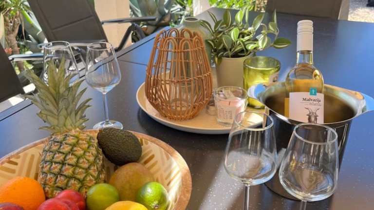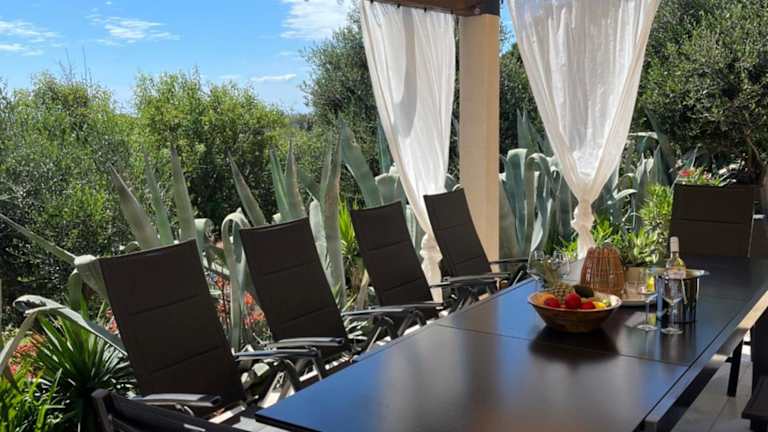 Die klimatisierte Villa umfasst 4 Schlafzimmer, ein Wohnzimmer und eine voll ausgestattete Küche mit Kühlschrank und Kaffeemaschine. Zudem stehen 4 Badezimmer mit Dusche und Whirlpool zur Verfügung. Handtücher und Bettwäsche werden bereitgestellt.