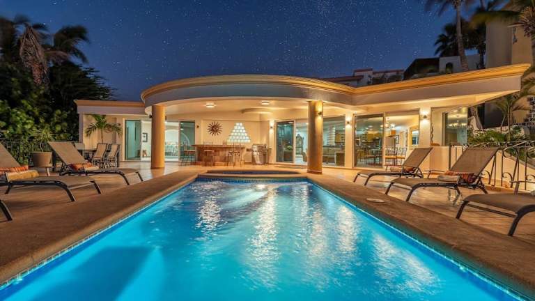 Die Unterkunft Villa Sol y Luna by Cabo Villas bietet Übernachtungsmöglichkeiten mit Meerblick. Die Villa ist klimatisiert und umfasst 4 Schlafzimmer sowie 5 Badezimmer. Zur Ausstattung gehören ein TV und ein Whirlpool. Die Villa ist als Nichtraucherunterkunft ausgewiesen und eignet sich nicht für Junggesellen-/Junggesellinnenabschiede oder ähnliche Feiern.