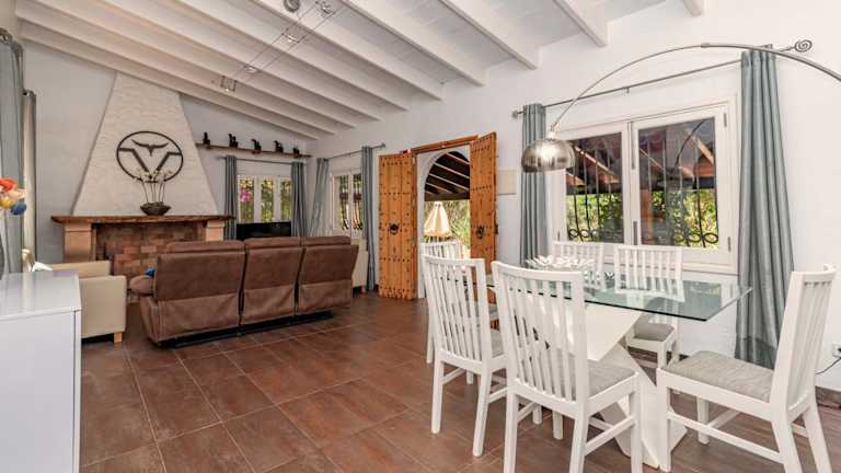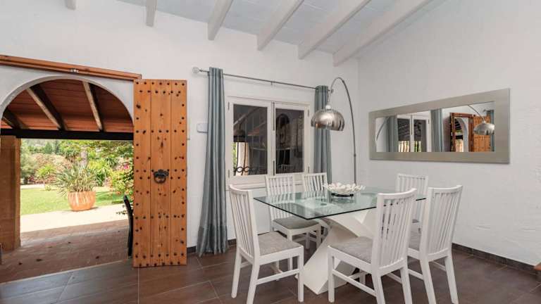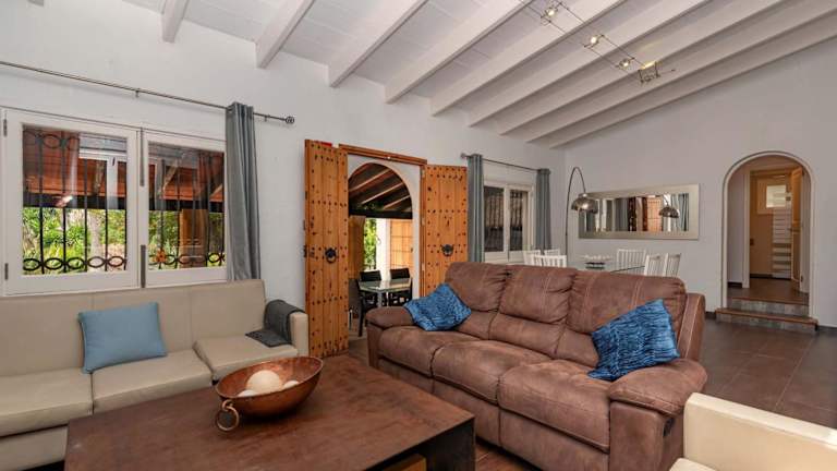 Die Villa ist mit zwei Schlafzimmern und einer kompletten Küche ausgestattet, die über einen Kühlschrank und einen Geschirrspüler verfügt. Zusätzlich stehen ein Badezimmer mit Dusche, Haartrockner und Waschmaschine zur Verfügung. Handtücher und Bettwäsche sind ebenfalls bereitgestellt.
