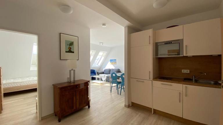 Die Zimmer der Villa Sonnenschein verfügen über eine voll ausgestattete Küchenzeile, einen Kühlschrank und eine Kaffeemaschine, einen TV sowie ein eigenes Badezimmer mit Dusche. Einige Wohneinheiten bieten zudem einen Sitzbereich und/oder einen Balkon.