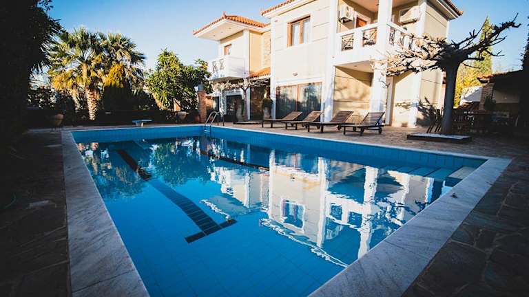 Die Villa Soula bietet eine heimelige Unterkunft mit einer Terrasse, auf der Gäste den Blick auf das Meer und die Berge geniessen können. Das Haus verfügt über einen ganzjährig geöffneten Aussenpool, einen Fitnessraum und eine Sauna. Die Unterkunft bietet ausserdem einen eigenen Garten und Grillmöglichkeiten sowie einen Bereich zum Entspannen in der Gemeinschaftslounge.