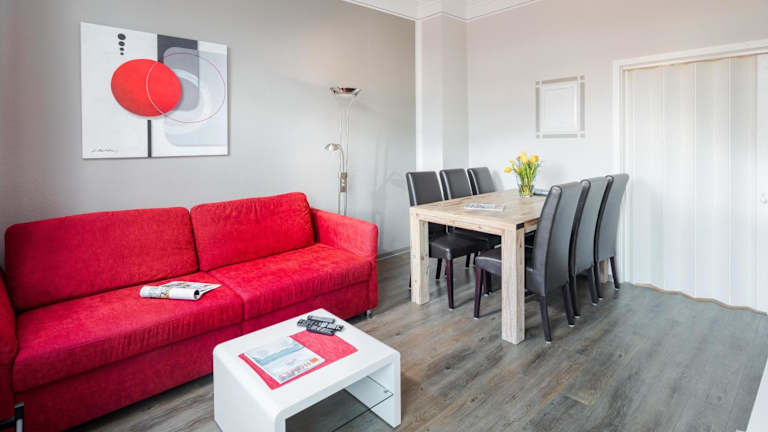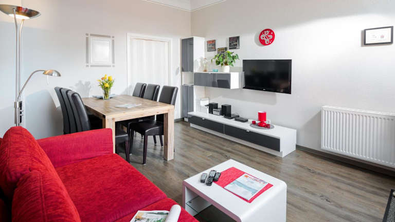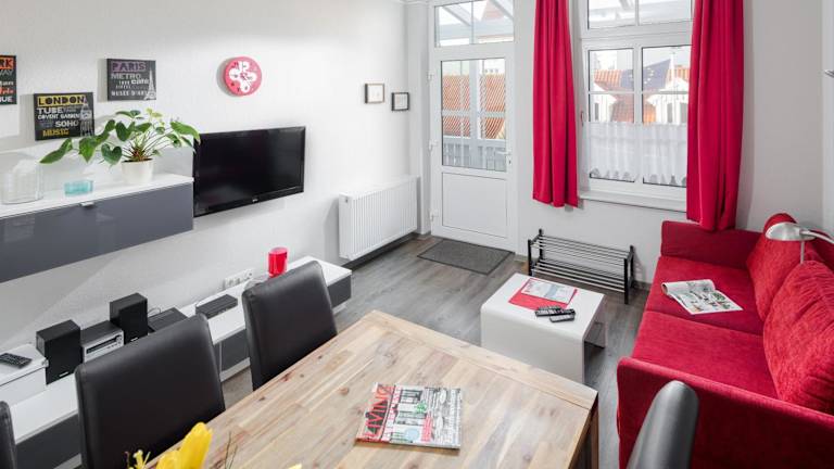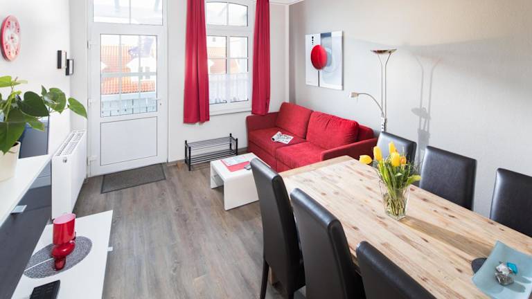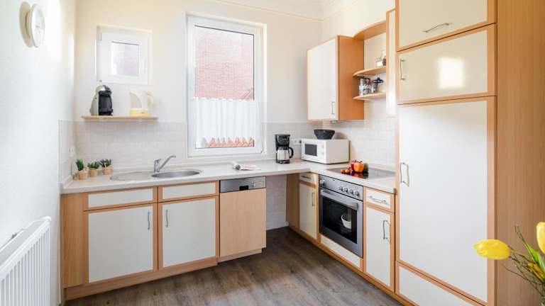 Die Ferienwohnung verfügt über 2 Schlafzimmer, ein Wohnzimmer sowie eine voll ausgestattete Küche mit Geschirrspüler und Ofen. Die Unterkunft ist für Bequemlichkeit und Flexibilität ausgelegt.