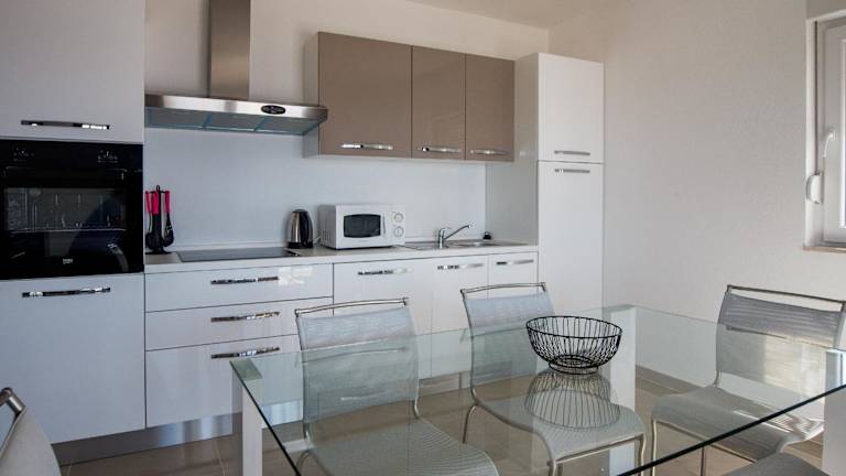 Die Wohneinheiten verfügen über einen Balkon mit Meerblick, einen Sitzbereich sowie einen Satelliten Flachbild-TV. Die voll ausgestattete Küche beinhaltet einen Kühlschrank, einen Ofen, eine Mikrowelle, eine Herdplatte, eine Kaffeemaschine und einen Wasserkocher. Zudem gibt es ein eigenes Badezimmer mit einer Dusche und kostenlosen Pflegeprodukten.