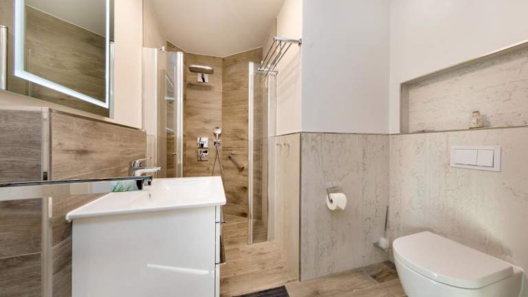 Die Ferienwohnung verfügt über zwei Schlafzimmer, ein Wohnzimmer mit Flachbild-TV, eine gut ausgestattete Küche mit Kühlschrank und Geschirrspüler sowie ein Badezimmer mit Dusche. Eine Terrasse mit Gartenblick rundet das Angebot ab. Auf Wunsch können Handtücher und Bettwäsche gegen Aufpreis bereitgestellt werden.