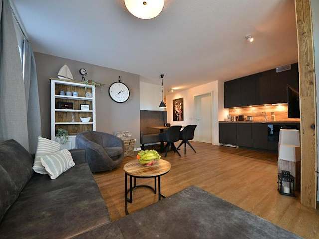 Die Ferienwohnung umfasst zwei Schlafzimmer und ist mit einem Flachbild-TV, Kabelkanälen sowie einer voll ausgestatteten Küche ausgestattet. In der Küche befinden sich Kühlschrank, Geschirrspüler, Waschmaschine sowie Ofen und Mikrowelle. Handtücher und Bettwäsche werden bereitgestellt.