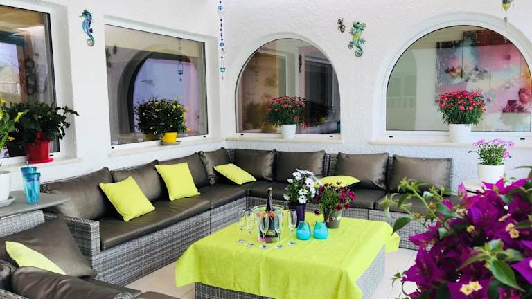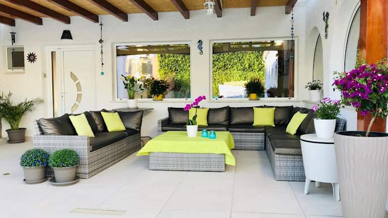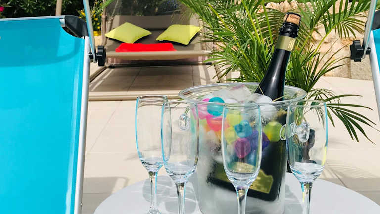 Das Ferienhaus beinhaltet 5 Schlafzimmer, ein Wohnzimmer und eine voll ausgestattete Küche mit Kühlschrank und Kaffeemaschine. Zudem gibt es 5 Badezimmer mit Bidet und Dusche. Handtücher und Bettwäsche werden zur Verfügung gestellt.