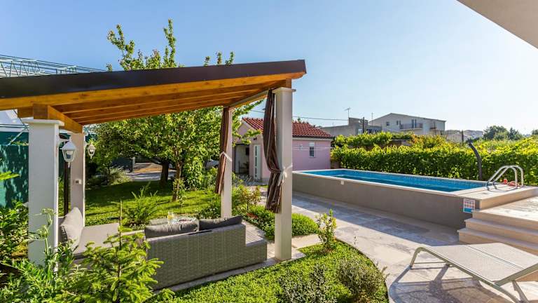 Die Villa Sweet Home Marija With Heated Pool verfügt über einen eigenen, beheizten Aussenpool, eine Terrasse sowie einen Garten mit Grillmöglichkeiten. Ergänzende Dienstleistungen sind kostenloses WLAN und ein gratis Privatparkplatz. Die Unterkunft zeichnet sich durch eine klimatisierte Ausstattung aus und wird von einem privaten Gastgeber geführt.