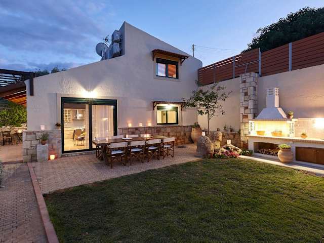 Genießen Sie Ihren Aufenthalt in der Villa Thallos, einer wunderschönen Unterkunft mit Meerblick. Die Villa bietet geräumige Zimmer, eine voll ausgestattete Küche und einen schönen Garten mit Grillmöglichkeiten. Profitieren Sie von kostenfreiem WLAN und Privatparkplätzen. Die Villa ist ideal gelegen, nur wenige Gehminuten vom Strand Aposelemis entfernt. Freuen Sie sich auf einen angenehmen Aufenthalt und erkunden Sie die Umgebung mit dem Fahrrad oder dem Mietwagen.