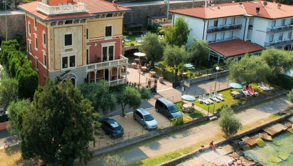 KURTAXE Seit 2011 wird auch in Italien eine Kurtaxe für Erwachsene und Jugendliche ab 12 Jahren in Höhe von 1,50 Euro pro Tag erhoben. Kinder bis 12 Jahre sind kostenfrei. NOTE Bei Buchungen unter drei Nächten besteht der volle Tarif plus 50% Eventueller Rücktritt der Buchung muss schriftlich erfolgen, mindesters 30 Tage vor dem vorgesehenen Anreisetag . Wir erlauben uns die Anzahlung einzubehalten. Bei vorzeitiger Abreise erlauben wir uns den Übernachtungspreis pro Person und ohne Frühstück bis zu drei Tagen zusätzlich zu berechnen. Rauchen ist im Zimmer und in allen geschlossenen Gemeinschaftsräumen untersagt. Haustiere werden in keiner Größenordnung akzeptiert. In den Gästezimmern ist Besuch nicht erlaubt. Im Außenbereich mit kurzer Voranmeldung. ** Um die tägliche Reinigung der Zimmer zu gewährleisten, bitten wie Sie das Zimmer bis spätestens 10.30 Uhr zu verlassen, ansonsten können wir die tägliche Reinigung nicht garantieren.* B&B BEINHALTET Frühstückbuffet von 8.00 Uhr bis 11.30 Uhr ( nicht in Anspruch genommene Frühstück werden nicht zurückerstattet ) Wi-Fi im gesamten Gebäude Pro Zimmer besteht ein Auto bzw. Motorradparkplatz Fernsehzimmer mit kleiner Bücherauswahl sowie Brettspiele, Puzzle, Kartenspiele ect. Kurtaxe Im Zimmer befindet sich: HD Satelliten-Fernsehn Mini-Bar ( Getränke im Preis nicht enthalten ) Wasserkocher Föhn Pflege-Set Zimmer-Safe Schreib-Set Zimmereigene Heizungsregelung Klimaanlage ( nicht in allen Zimmern ) *** Ventilator Im pensionseigenen Garten direkt am See und auf der Sonnenterrasse, besteht die Nutzung von: Liegestühlen und Sonnenschirmen Strandtücher EXTRA Doppelzimmer als Einzelzimmernutzung plus + 50% ( ohne spezial Angebote) Kinderbett ohne Frühstück € 10,00 ** Frühstück vom Buffet für Besucher € 15,00 Room service Getränke € 2,00 Room service Frühstück € 5,00 ( bis 11:00 ) * Öffnungszeit Bar: von 08.00 Uhr bis 18.00 Uhr, anschließend genießen auch wir einen freien Abend, sind aber gerne für Sie da bei Fragen nach Restaurants, Pizzeria ect. Aperitivo Time von 11.30 Uhr bis 12.3o Uhr Euro 5,00 pro Person ( aus unserer Aperitif-Karte mit Snack) Tagesmenu € 15,00 ( ohne Getränke ) ** Aperitif und Kaffee inclusive Happy Hour von 17:00 bis 18:00 ( Alle Getränke aus unserer Cocktail-Karte € 5,00 ) Weinverkostung mit passender Essensbegleitung SKONTI Barzahlung bei Ankunft -2% Überweisung des Gesamtbetrag auf unser Konto bei der Buchung -5% ** Kinder bis zu 4 Jahren gratis Kinder von 5 bis 8 Jahren, Zusatzbett mit Frühstück -50% ** Drittes Bett im Doppelzimmer ( nicht in jedem Zimmer möglich ) -25% ** ** Wir bitten Sie uns zu informieren.