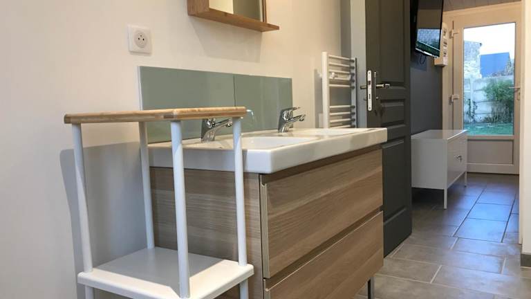 Das Ferienhaus besteht aus 2 Schlafzimmern, einem Wohnzimmer, einer voll ausgestatteten Küche mit Kühlschrank und Kaffeemaschine sowie 1 Badezimmer mit Badewanne und Haartrockner. Handtücher und Bettwäsche werden ebenfalls bereitgestellt.