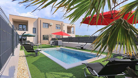 Villa Tri Palme bietet Übernachtungsmöglichkeiten in einer modernen Villa mit saisonalem beheiztem Aussenpool, Garten und Terrasse. Kostenfreies Wifi ist in der gesamten Unterkunft verfügbar. Die Villa ist ausgestattet mit Klimaanlage und hat einen Balkon sowie einen kostenlosen Privatparkplatz.
